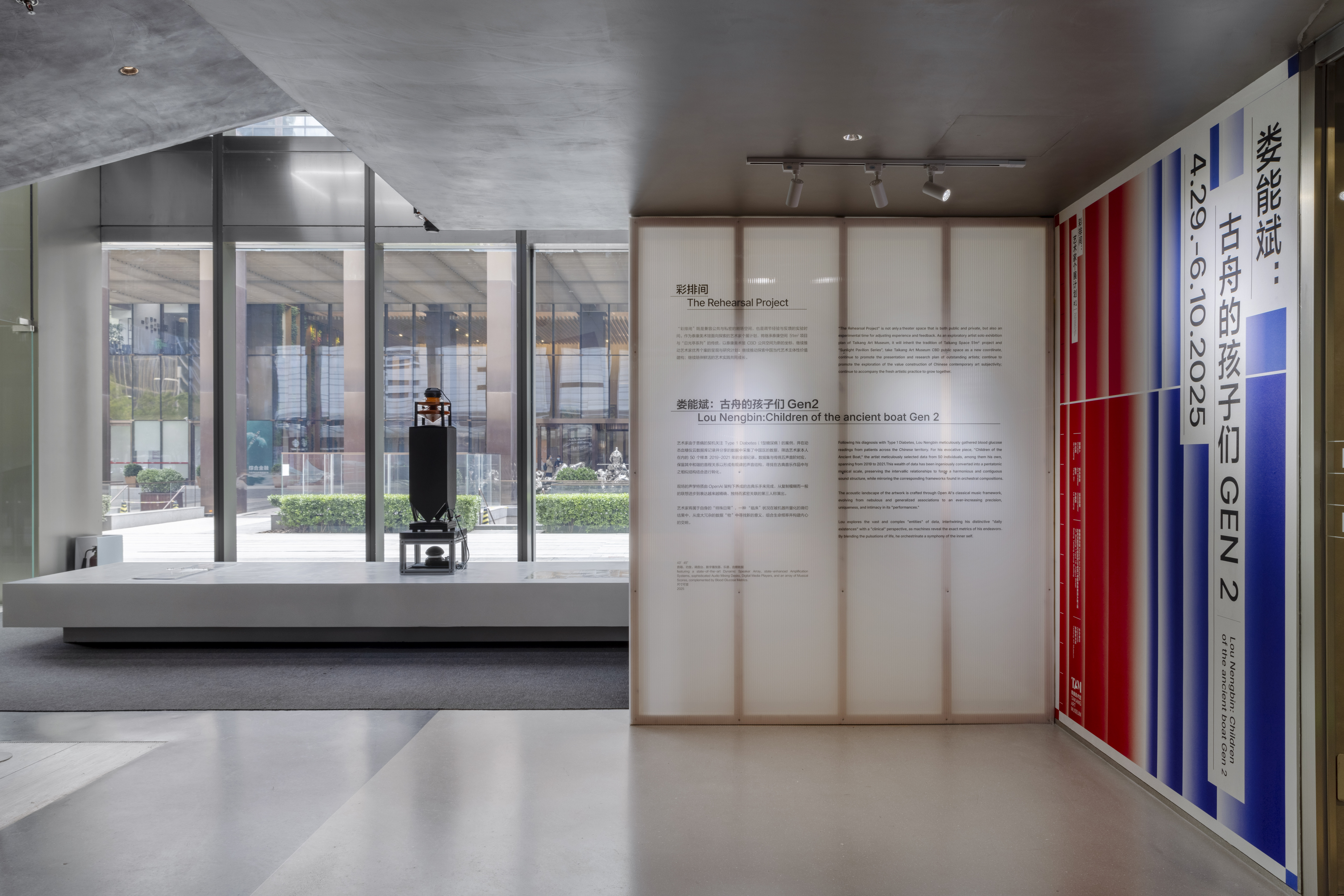 首期“彩排间:艺术家个展计划”特邀艺术家娄能斌呈现声音装置作品《古舟的孩子们Gen2》。在策展人辛云鹏看来,娄能斌的创作多以声音为媒介,试图构建与自身处境紧密关联的“社会模型”。他回忆道:“印象较深的是他在UCCA美术馆某大师展览现场的实践——他在同一空间播放此前行为表演中采录的环境人声(一种低频群杂的混响),声浪如同观展人群的涌动。当音响骤停时,作为现场仅有的几名观众之一,我突然被拽入一片寂静的空旷公共空间。娄能斌以这种方式,微妙地揭示了当代艺术的尴尬处境。”